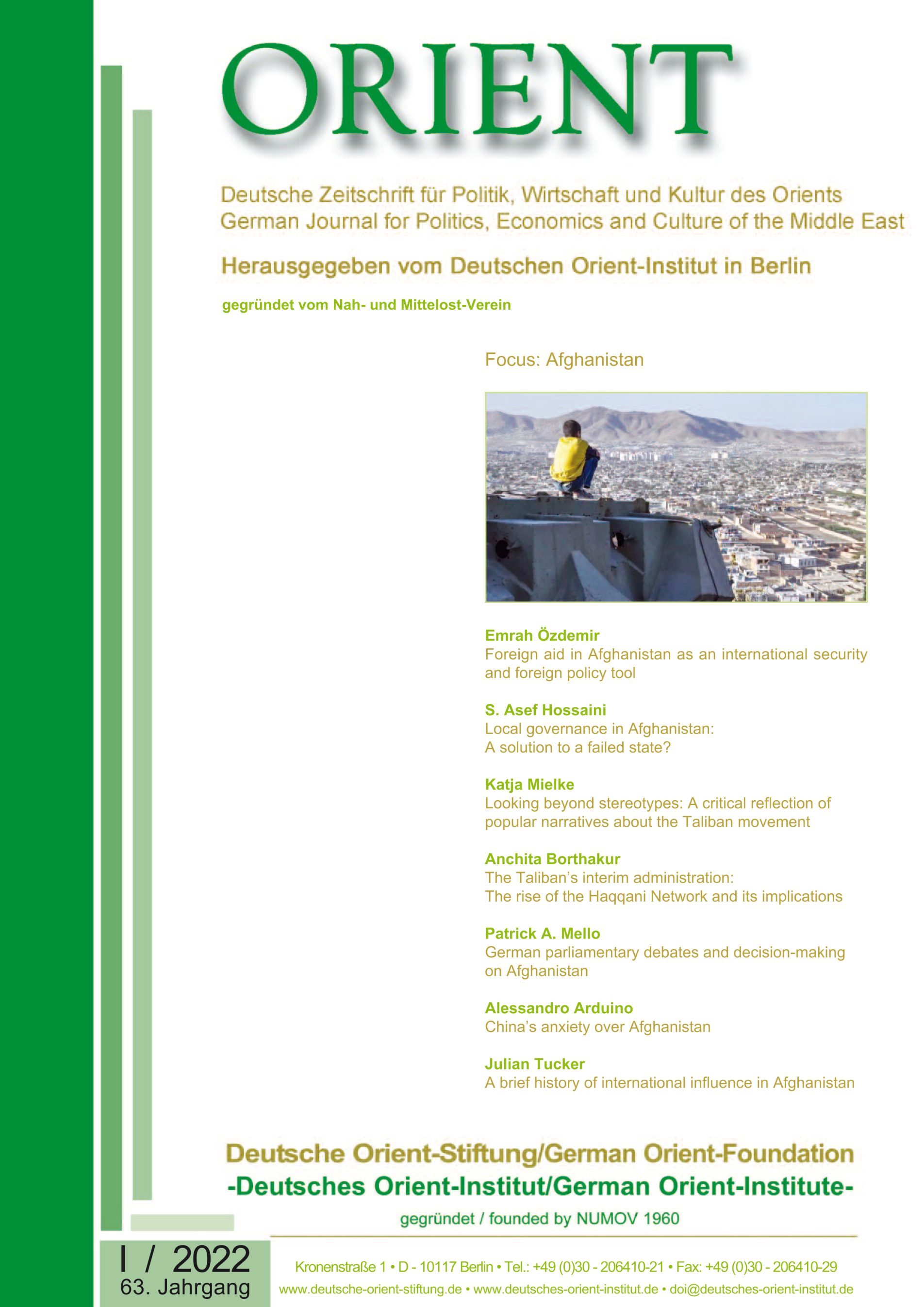 Emrah Özdemir provides a macro perspective on the international engagement in Afghanistan, before S. Asef Hossaini delves into the necessity of developing local governance. Then, Katja Mielke sheds light on some key narratives and misconceptions when talking about the Taliban and Anchita Borthakur adds her analysis of the new Taliban administration. Next, Patrick A. Mello outlines the parliamentary debates in the Bundestag on the matter, while Alessandro Arduino devotes attention to China’s influence in particular and Julian Tucker shifts again to the role of international actors.