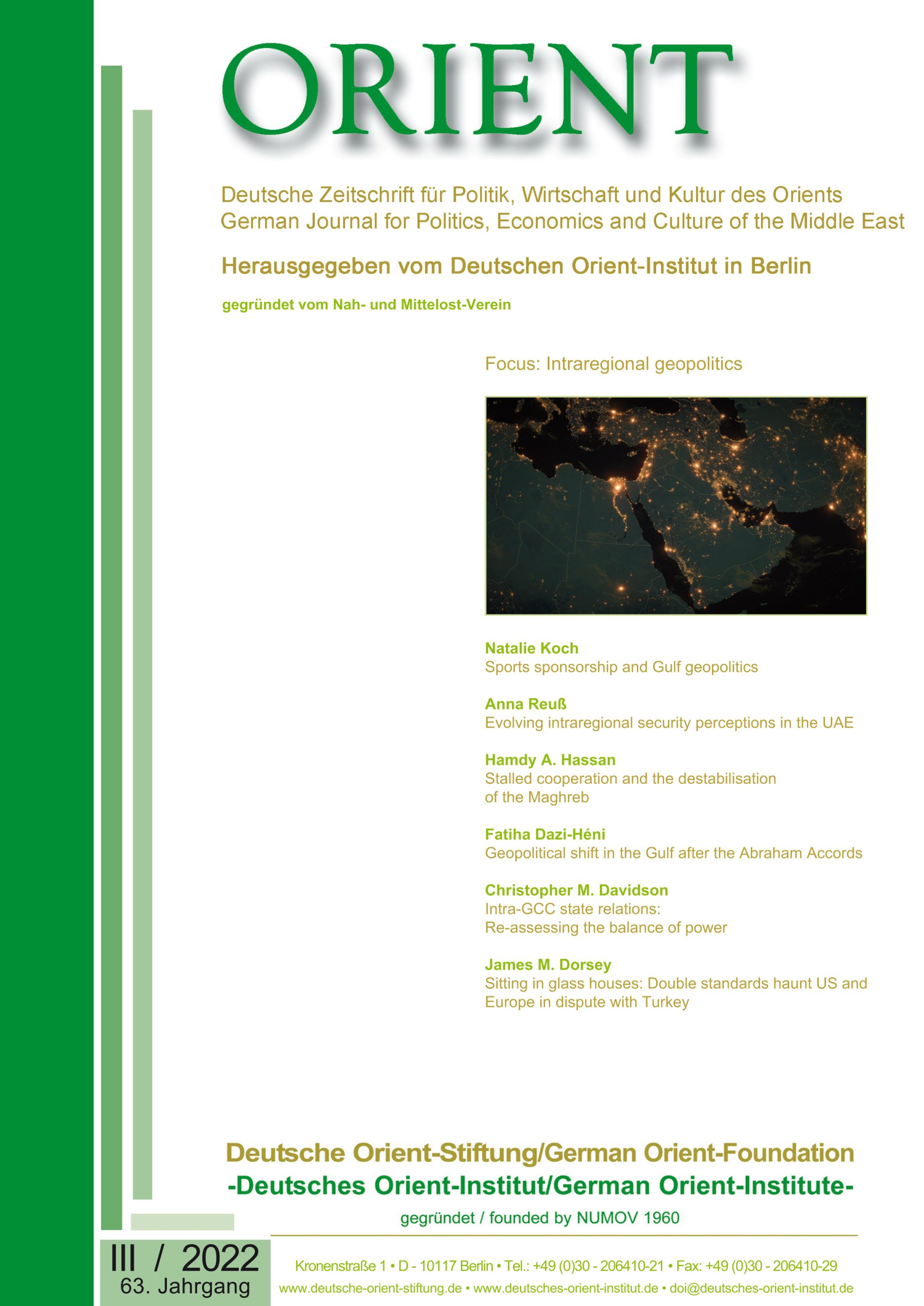 Natalie Koch takes a closer look at an area most people might not immediately associate with geopolitics: sports sponsorship by Gulf countries. Anna Reuß sheds light on a changing security perception of the UAE. Hamdy A. Hassan takes the reader to the potentials and obstacles of more regional cooperation in the Maghreb, while Fatiha Dazi-Héni reviews the effects of the Abraham Accords on regional geopolitics. Subsequently, Christopher M. Davidson turns the focus to the state of GCC reconciliation. James M. Dorsey then adds his analysis of regional factors at play in Turkey’s quarrels within NATO.